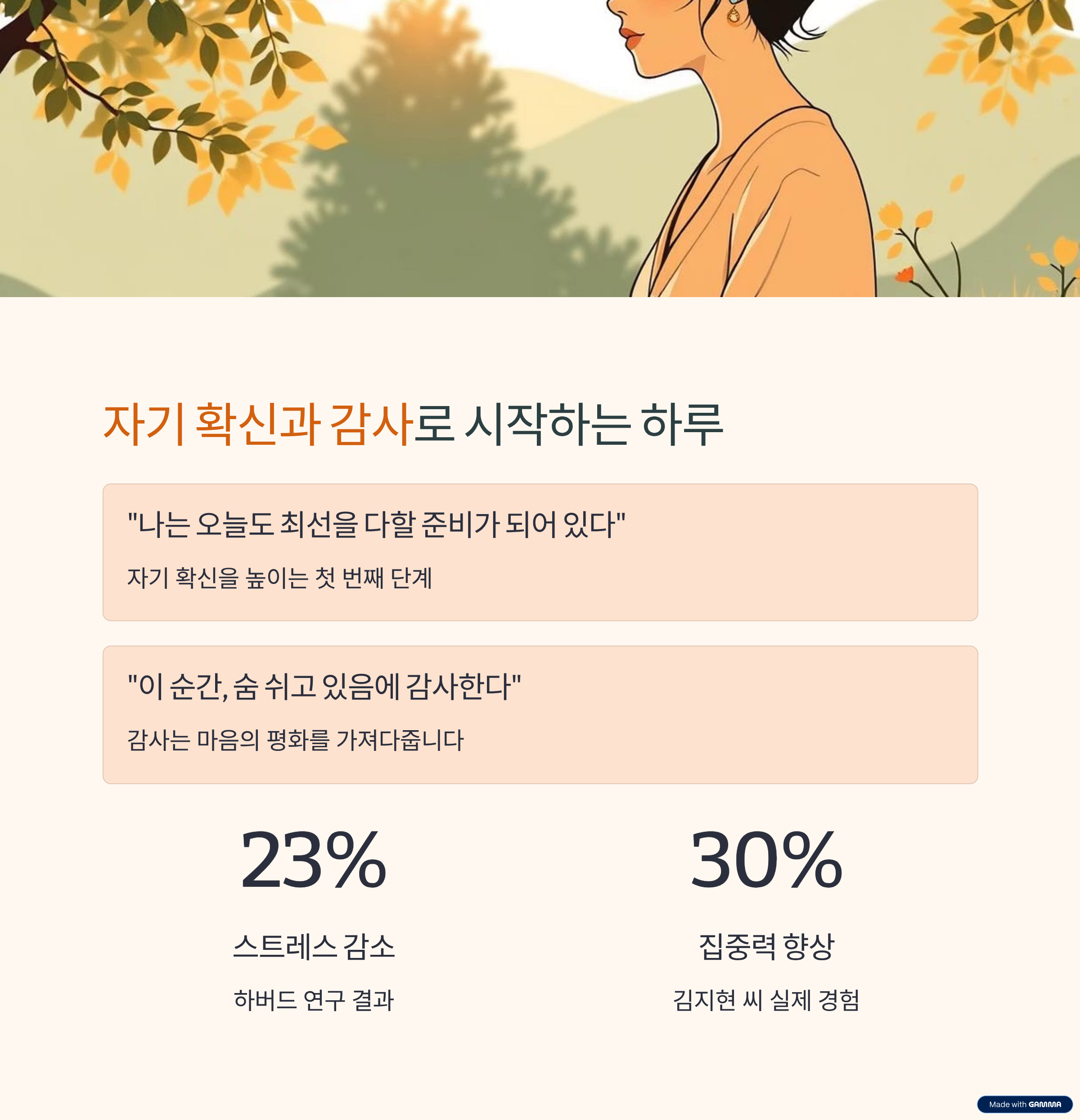 하루를 긍정적인 말로 시작해보세요. 기분과 성과가 달라집니다!