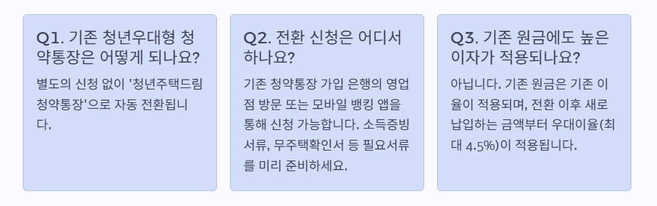 A1. 별도의 신청 없이 '청년주택드림청약통장'으로 자동 전환됩니다.