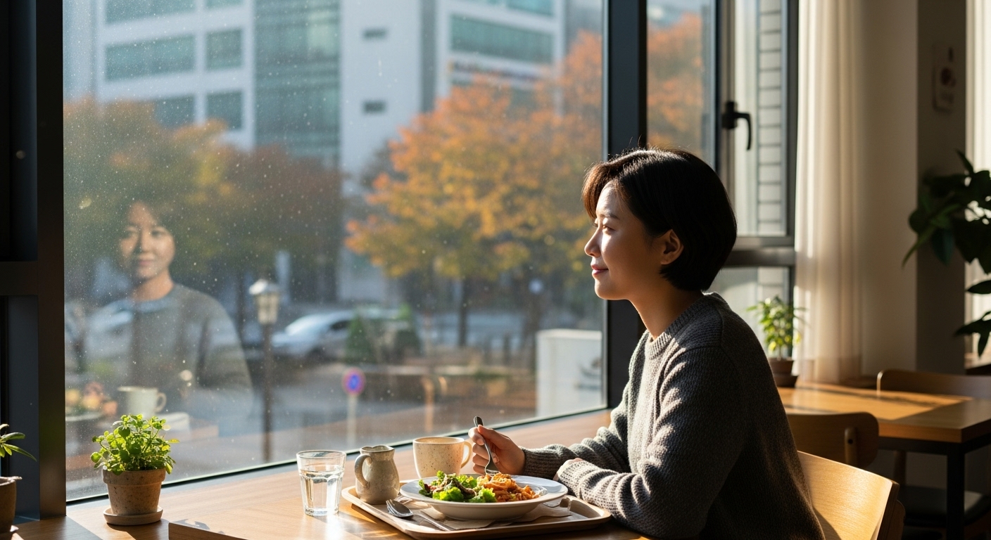 - 풍경 감상: 창밖의 풍경이나 지나가는 사람들을 보며 밥을 먹으면, 고립되어 있다는 느낌 대신 세상 속에 함께 있다는 느낌을 받을 수 있습니다.